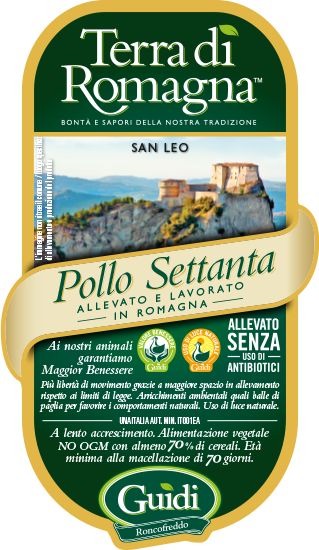 Per Guidi, il Pollo Settanta della linea Terra di Romagna è un prodotto che garantisce qualità anche attraverso la territorialità: questo marchio è associato esclusivamente ad animali allevati senza l'uso di antibiotici entro 70 chilometri dalla sede di lavorazione, il macello di proprietà della Società agricola Guidi di Roncofreddo ss, che è appunto a Roncofreddo, in provincia di Forlì-Cesena.