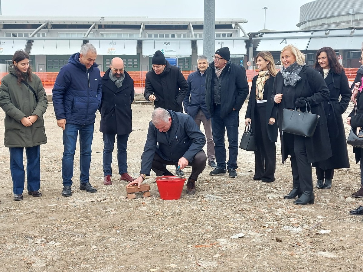 Il sindaco di Rimini Jamil Sadegholvaad insieme ad assessori e consiglieri del Comune con il presidente del CAAR Moreno Ricci i dirigenti, gli amministratori e i tecnici del Centro Agro Alimentare ha posato la simbolica prima pietra per dare ufficialmente avvio ai lavori per il nuovo padiglione de Centro Agro Alimentare Riminese.