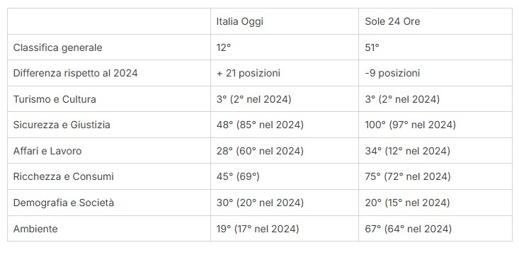 Due indagini con lo stesso oggetto, la “qualità della vita”, pubblicate a distanza di pochi giorni che forniscono risultati decisamente diversi per quanto riguarda Rimini. Per Italia Oggi la provincia di Rimini è al 12° posto in Italia per Qualità della Vita (+ 21 posizioni rispetto al 2024) mentre per il Sole 24 Ore, con i risultati resi noti in queste ore, è al 51° posto (- 9 posizioni rispetto al 2024).