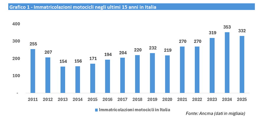 Per la prima volta dal 2013 – escluso il 2020, segnato dalla pandemia – il mercato italiano delle immatricolazioni di motocicli torna in negativo: nel 2025 sono state immatricolate circa 332.000 moto, con un calo del -6,1% su base annua