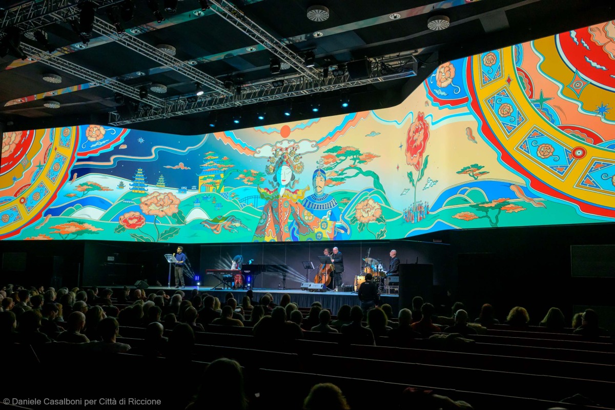 Il punto di partenza è stato la raffinata rilettura jazz della pianista e compositrice Eugenia Canale che, insieme al suo Rebus Quartet, ha interpretato con maestria le celebri arie di Puccini in un dialogo elegante tra swing e atmosfere contemporanee. Ieri sera, in prima assoluta a Riccione, questa ricerca musicale ha trovato una nuova, spettacolare veste, arricchendosi dell'intreccio con il racconto visivo di Elisa Macellari, le cui illustrazioni proiettate sul grande schermo hanno dato un volto nuovo ai personaggi, e la voce narrante di Riccardo Colombini, che ha guidato il pubblico dentro la trama dell’opera. Una performance spettacolare e armoniosa, capace di rendere l’opera accessibile e magica, unendo la forza della musica jazz alla potenza delle immagini e della parola, che ha incantato la platea della Sala Concordia.