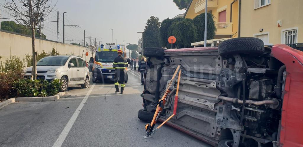 Riccione, donna perde il controllo, urta un’auto e si ribalta. Estratta dai vigili del fuoco