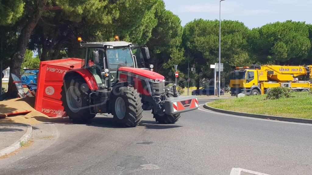 Un trattore causa la chiusura della strada direzione mare monte mentre la rotonda della statale 16 adriatica rimane inaccessibile in direzione Rimini