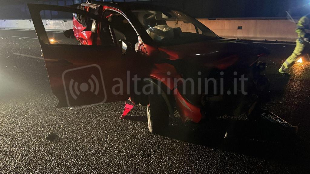 Brutto incidente sull’autostrada A14 nel tratto riminese al km 128, nel tratto riminese. Questa notte, verso le due, due vetture, che procedevano sulla corsia nord, direzione Ancona – Bologna, si sono scontrate per cause ancora da chiarire. Si tratta di una Peugeot 2008 e una Renault Capture con targa sammarinese. Secondo una prima ricostruzione, si sarebbe trattato di un improvviso tamponamento. Gli operatori dei Vigili del fuoco, intervenuti sul posto, hanno provveduto alla messa in sicurezza delle auto fortemente danneggiate, fortunatamente non sono dovuti intervenire per persone incastrate.