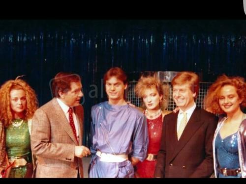 Nelle foto: i cantanti Sandy Marton, Leroy Gomez e Alan Sorrenti (in alto); Gazebo; Difino con Corrado, Claudio Lippi alla trasmissione ‘Buona Domenica’; Difino nella copertina della storica rivista Il Monello; Tullio De Piscopo; Stefano Sensi e Stefano Eranio ex Milan (sotto); il cantante Den Harrow (a sinistra)
