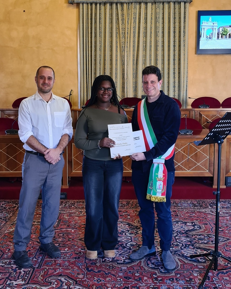 Sono stati premiati questa mattina (sabato 13 dicembre) dal sindaco Filippo Sacchetti e dall’assessore ai Progetti scolastici, Filippo Borghesi, gli studenti meritevoli risultati vincitori del bando in memoria di Caterina Gambuti. Sei le borse di studio del valore di 500 euro ciascuna, che si sono aggiudicate ragazze e ragazzi residenti a Santarcangelo che frequentano le scuole del territorio: Tommaso Nucci, Mia Brandi e Daniele Polverelli (classe 2007), Khady Diallo (classe 2008), Lorenzo Scarpelli (classe 2009) e Vildan Zengo (classe 2011).