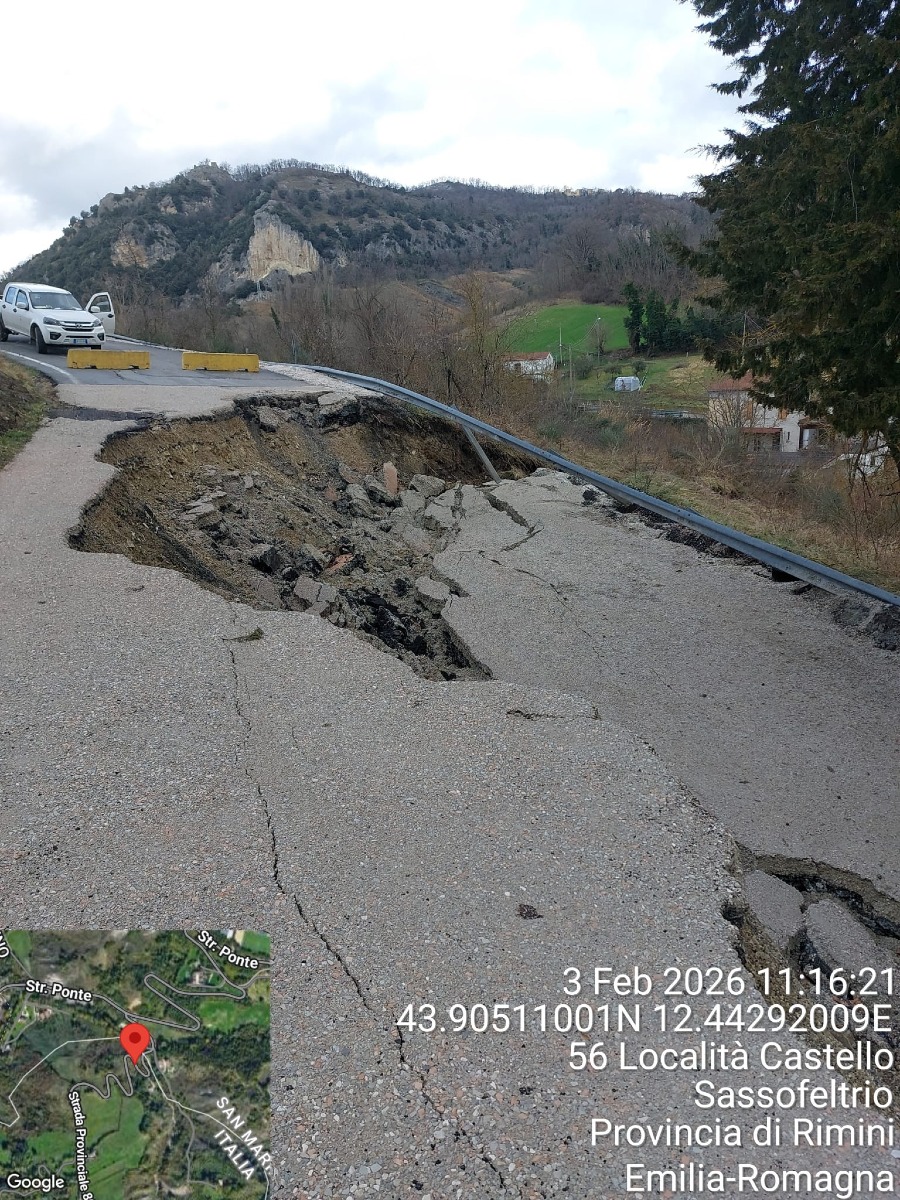 Sassofeltrio, partono i lavori sulla SP 86: strada chiusa dopo la frana