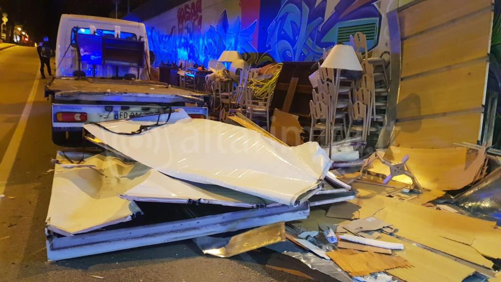Sbatte sotto il ponte: divani, sedie e tavolini in strada. Lo schianto è impressionante