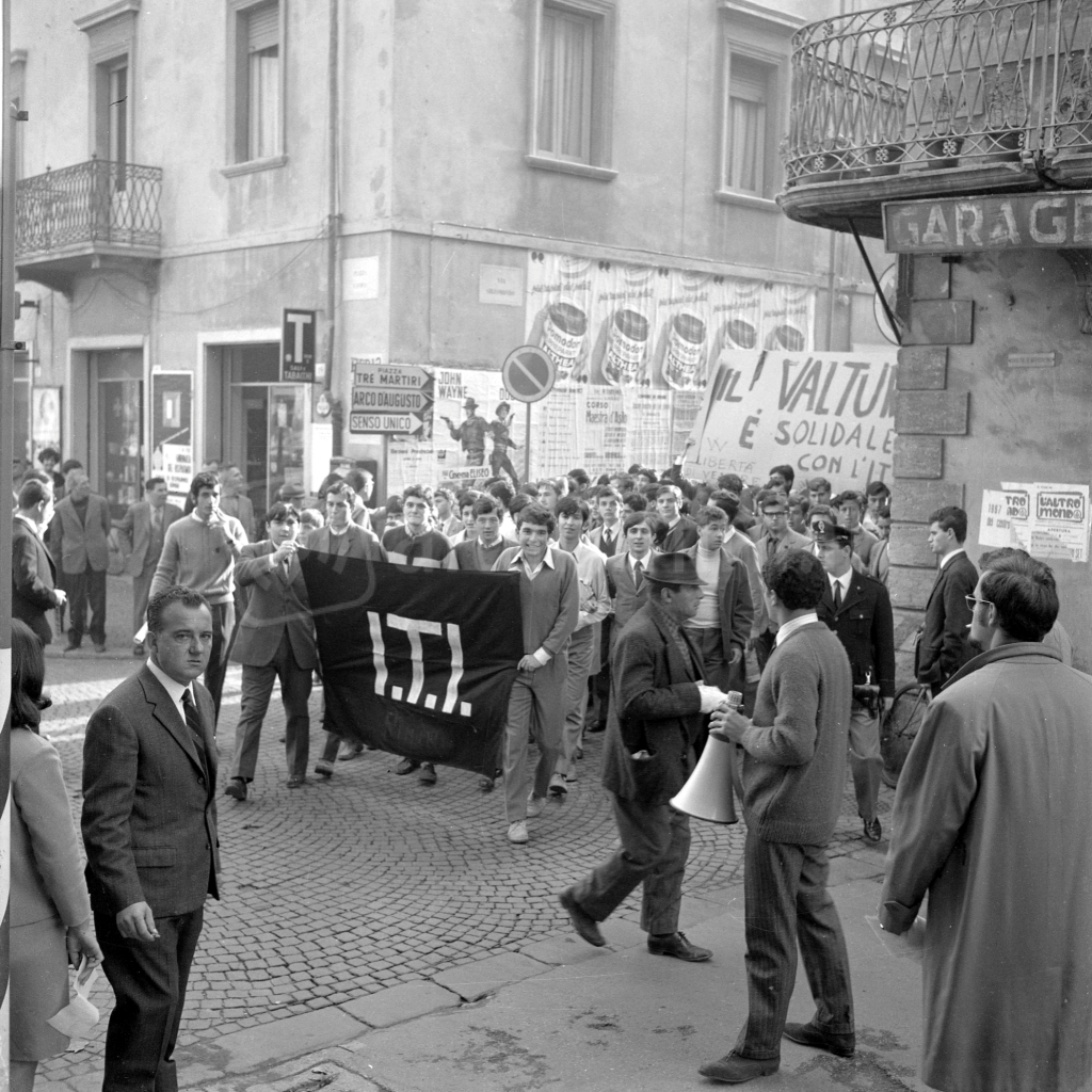 La si distingue chiaramente anche nelle foto in bianco e nero degli anni ’50 e ’60, durante le manifestazioni e gli eventi di piazza, quando tutta l’area fra il Palazzo dell’Arengo e il Teatro Galli era un grande parcheggio di auto e moto.