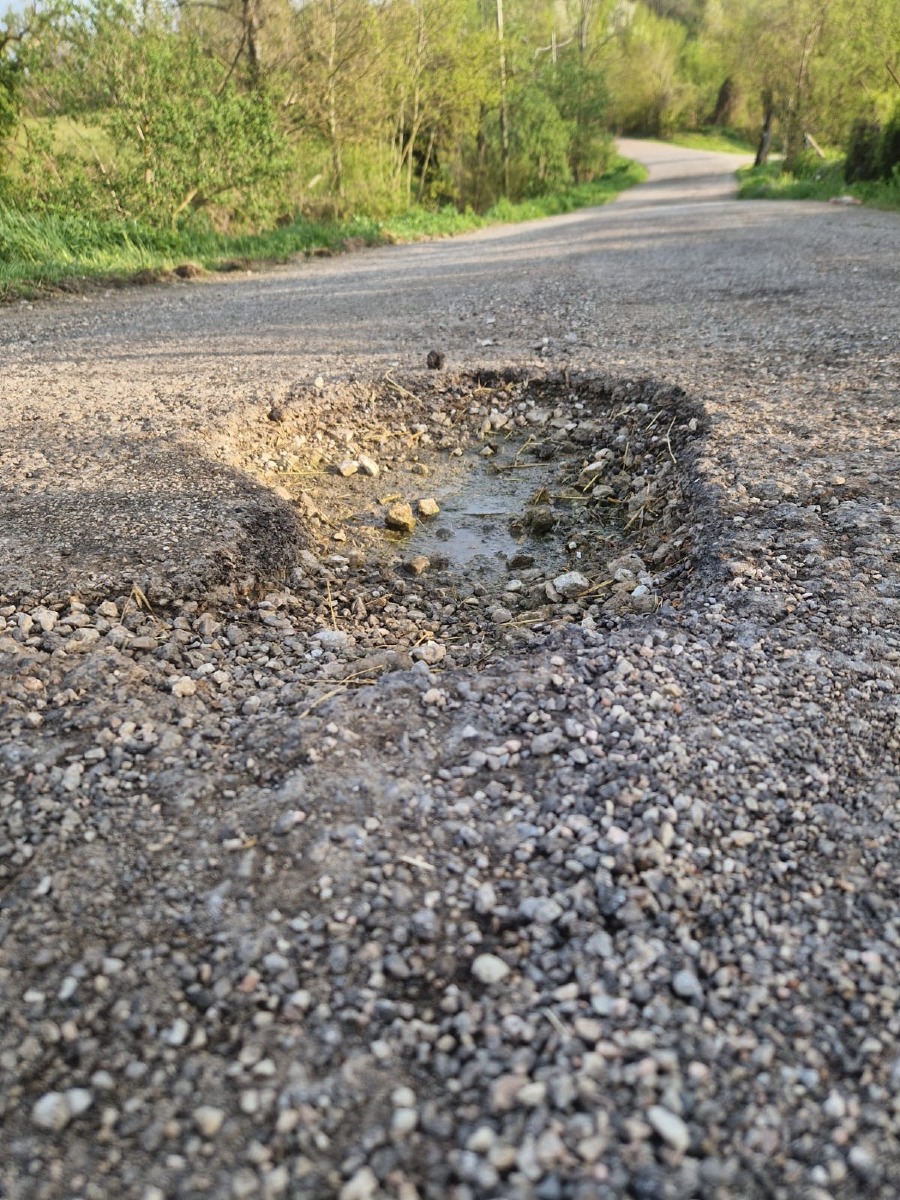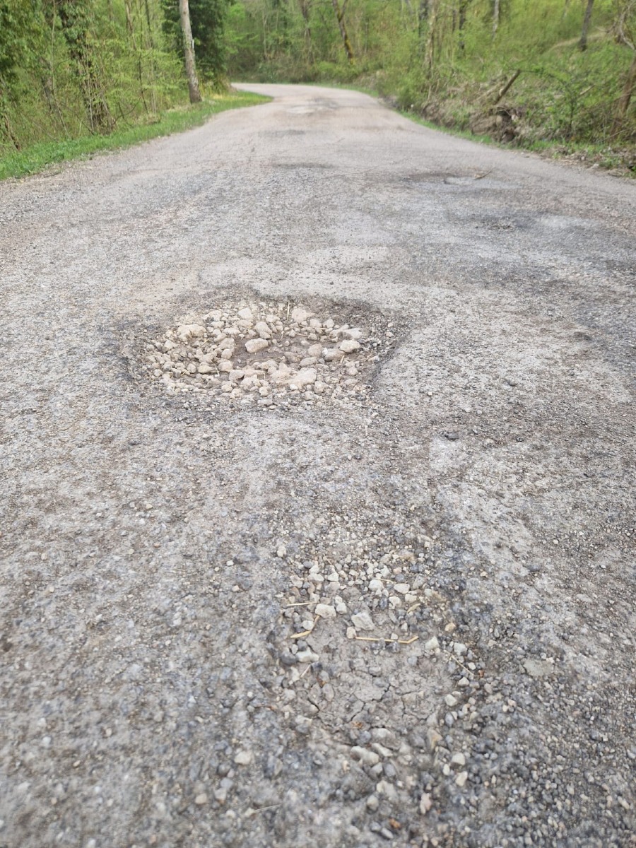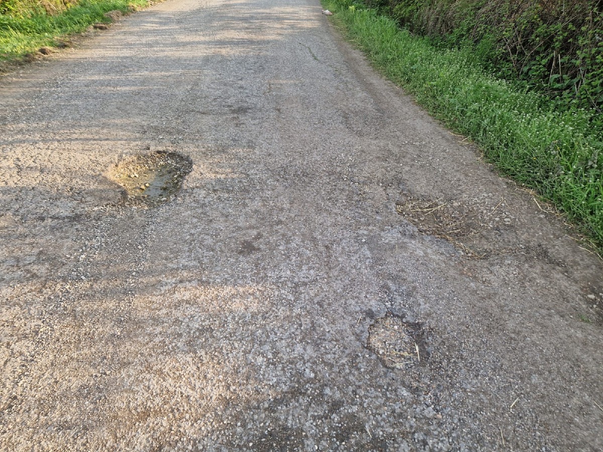 "Un manto stradale dissestato che causa danni ai veicoli e questo tratto non è considerato nemmeno per quanto riguarda apertura neve e taglio erba."