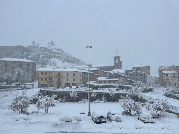 Copiosa nevicata sull’entroterra riminese: paesaggio imbiancato già dalle prime ore