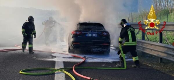 Vigili del Fuoco in azione sulla A14: vettura distrutta dal fuoco all’altezza di Rimini