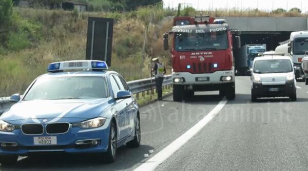 Auto a fuoco durante la marcia in A-14, paura per una coppia
