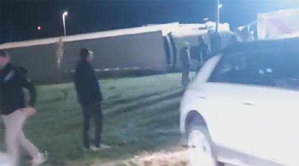 Incidente nella notte: Tir carico di biscotti si ribalta nella rotonda di San Lorenzo a Riccione