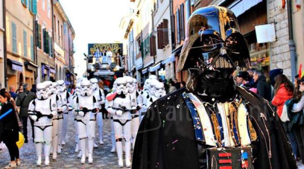 FOTO: migliaia in piazza per il carnevale di Santarcangelo, sfilano carri e maschere