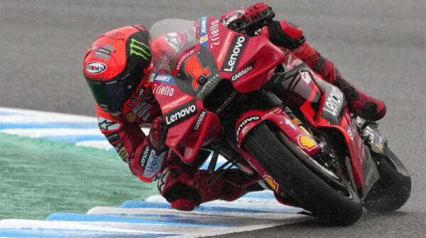 Bagnaia trionfa in Catalogna, Martin e Marc Marquez sul podio. Bastianini delude
