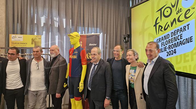 La conferenza stampa di presentazione è stata anche l’occasione per presentare – con Paola Santini, titolare dell’omonima azienda – le maglie ufficiali del Tour de France: la Gialla, a Pois, Verde e Bianca. Insieme alle nuove creazioni ideate per celebrare la Grande Partenza, tra cui quella dedicata alla città di Bologna.
