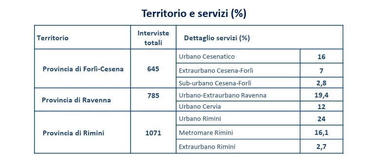 L’indagine estiva riveste un ruolo strategico per un territorio a forte vocazione turistica come la Romagna e consente di intercettare un’utenza diversa da quella tipicamente monitorata nelle campagne autunnali. Il monitoraggio ha coinvolto i servizi urbani ed extraurbani delle tre aree costiere — ravennate-cervese, forlivese-cesenate (con centro su Cesenatico) e riminese — attraverso 2.500 interviste rivolte ai passeggeri di età superiore ai 14 anni, realizzate dal 16 luglio al 3 agosto 2025.