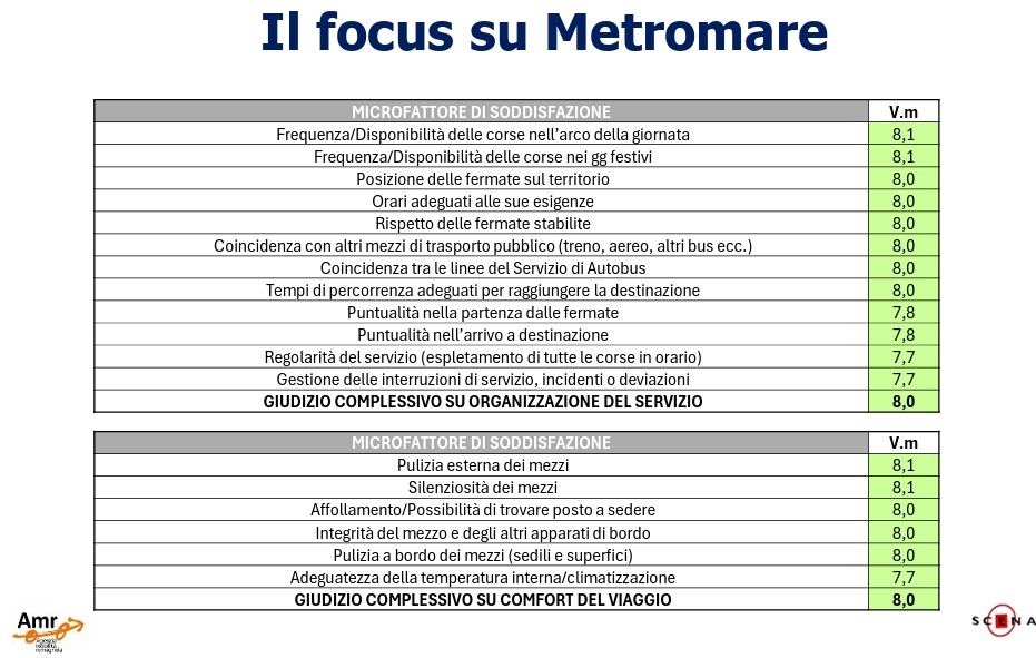 L’indagine AMR rivela giudizi positivi su servizi urbani, extraurbani e BRT Metromare