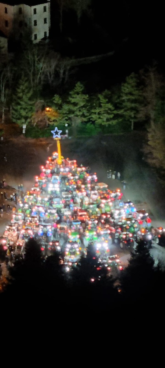 In Alta Valmarecchia si è rinnovata la tradizione del flash mob "agricolo", con protagonisti una sessantina di agricoltori dell'Alta Valmarecchia, di Verucchio e San Marino. Domenica (14 dicembre) infatti si sono radunati, con i loro trattori, per dare vita in piazzale Buscarini al più grande albero di Natale della Valmarecchia, con tante luci e un colpo d'occhio mozzafiato dall'alto.
