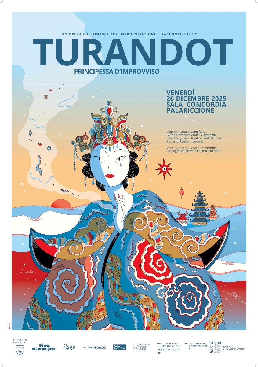Una Turandot completamente originale accenderà il tradizionale “Concerto degli Auguri” de “La notte dei sogni” del 26 dicembre alla Sala Concordia. Dal progetto “Turandot” della pianista e compositrice Eugenia Canale, che reinterpreta i celebri brani dell’opera attraverso improvvisazioni, atmosfere swing, ragtime e ballad, muove i suoi passi la produzione originale visiva e narrativa, in prima assoluta di Città di Riccione: “Turandot - Principessa d’improvviso”. In questa particolare occasione, la rilettura contemporanea dell’opera pucciniana sarà valorizzata dalle illustrazioni dell’artista Elisa Macellari: la scenografia digitale accompagnerà la performance, trasformandola in un’esperienza visiva e sonora davvero indimenticabile. La voce narrante di Riccardo Colombini guiderà il pubblico alla scoperta dell’opera.