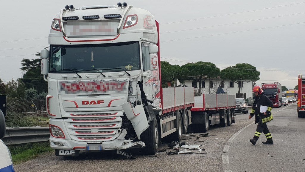 Violento frontale tra auto e tir: 50enne in gravi condizioni. Chiusa via Tolemaide