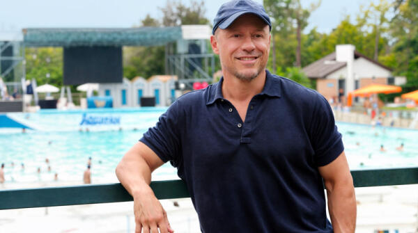 Stefano Accorsi tra gli scivoli di Aquafan: "Romagna, tanti servizi e molto divertimento"